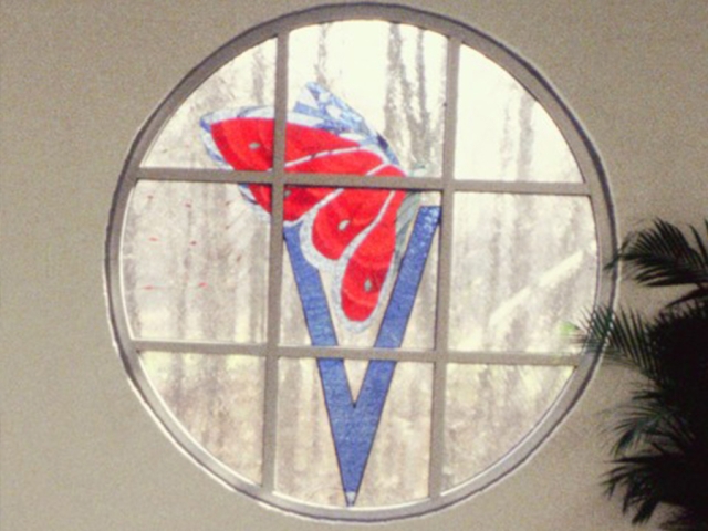 The new Therapeutic Pool Building has a stained-glass representation of the Venture logo in a circular window, adorning the natatorium. A butterfly at first flight; a symbol of the metamorphosis being made every day by the individuals Camp Venture serves.
